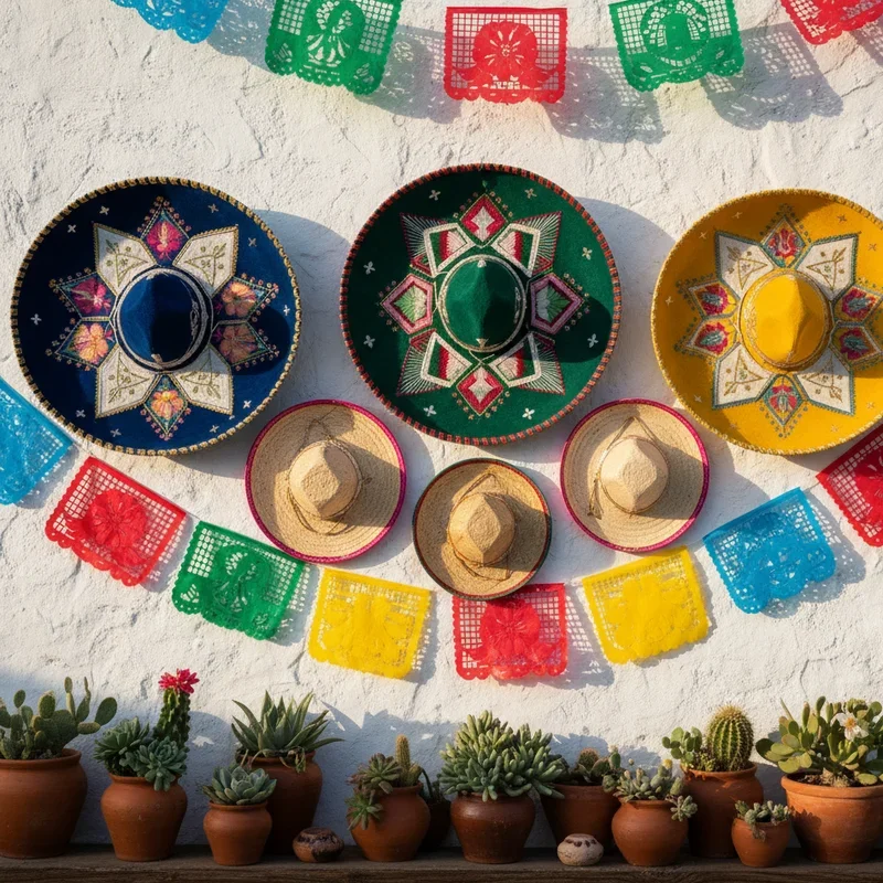 Transform traditional sombreros into stunning wall art that adds dimension and cultural flair to your party space. Arrange them in creative patterns, overlap different sizes for depth, or create a statement wall that becomes your party's photo backdrop. Paint plain straw sombreros in bright colors, add ribbon trim, or attach paper flowers for personalized touches. Mini sombreros work beautifully as drink markers or napkin holders when attached to clothespins. Hang them upside down from the ceiling filled with candy or flowers for unexpected centerpieces. Create a sombrero chandelier by suspending multiple hats at varying heights with fishing line. You can even use them as unique serving bowls for chips when lined with colorful napkins. The key is thinking beyond wearing them and seeing sombreros as versatile decorative elements that add authentic Mexican charm to any space.