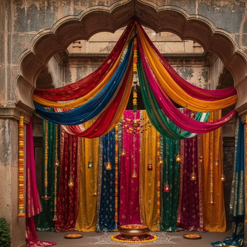 Transform rooms instantly with vibrant fabric drapes that add color, texture, and movement to your Diwali decorations. Choose rich silks, flowing chiffons, or festive brocades in traditional colors like red, gold, and orange that embody celebration. Create canopies over dining areas, frame doorways with cascading fabric, or partition spaces for intimate gathering zones within larger rooms. The soft textures balance harder elements like metal diyas and glass decorations while adding warmth to spaces. Incorporate fabric with gold prints, mirror work, or embroidery for extra glamour that catches and reflects light beautifully. Use sheer fabrics near windows to filter sunlight into colored rays that paint rooms in festive hues. This temporary decoration allows dramatic transformation without permanent changes, perfect for renters or those who enjoy changing decor. The movement of fabric in breeze adds dynamic element to otherwise static decorations.