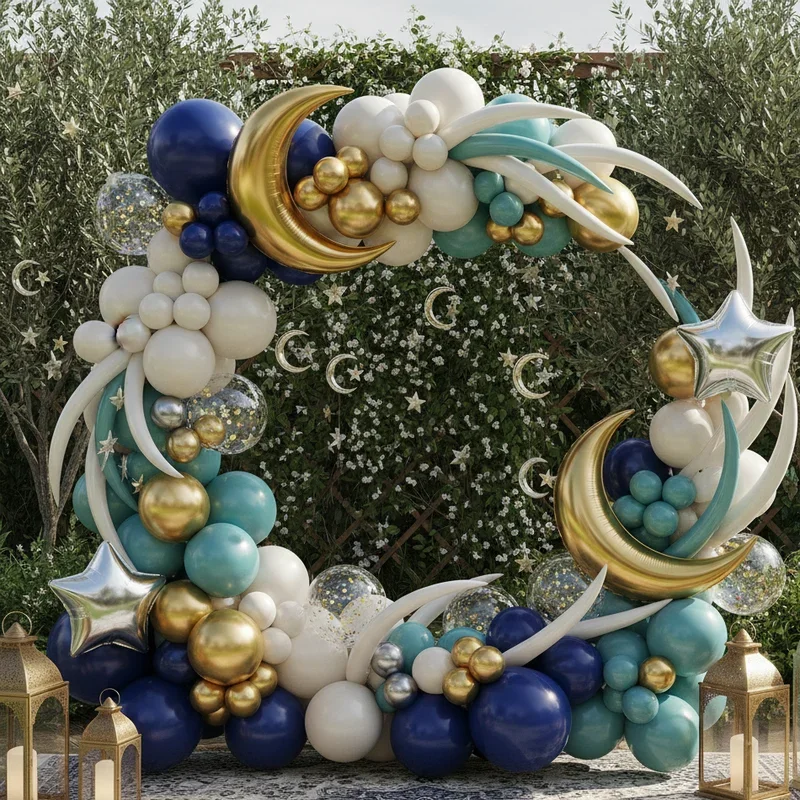 Transform your space with spectacular balloon displays that bring instant party atmosphere and joy to your Eid celebrations. Create balloon arches at entrances using colors that match your overall theme, mixing metallics with pastels for sophisticated elegance. Arrange balloon bouquets at different heights throughout your home, anchoring them with decorative weights that complement your decor. Include star and crescent moon-shaped balloons to maintain Islamic symbolism while adding festive elements. Helium balloons with ribbons create vertical interest, drawing eyes upward and making rooms feel larger and more celebratory. For outdoor gatherings, secure balloon clusters to mark celebration areas and guide guests through your space. The temporary nature of balloons makes them perfect for marking this special occasion distinct from everyday life.