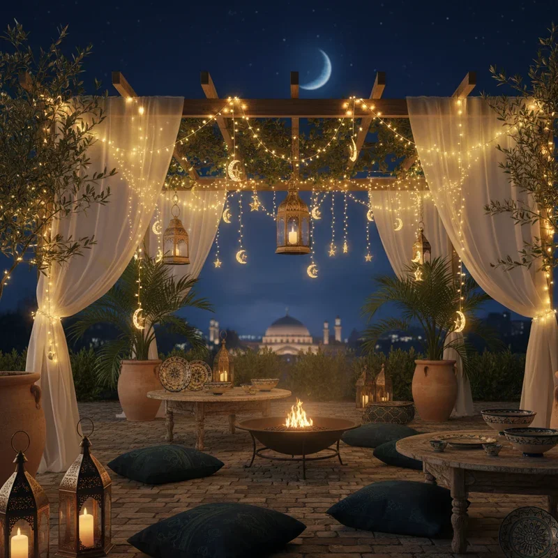 Extend celebrations beyond your home's walls with outdoor string lighting that creates magical atmosphere for evening Eid gatherings. Drape lights across patios, through trees, and along fences where they define celebration spaces and provide practical illumination. Choose warm white for elegant ambiance or multicolored options for playful, festive effects that delight children. Mix different light styles like globe bulbs, fairy lights, and lantern strings for layered lighting that adds depth. Solar-powered options reduce energy costs while providing eco-friendly illumination that lasts throughout extended celebrations. Timer controls ensure lights activate at sunset without daily adjustment, letting you focus on guests rather than decoration management. Weather-resistant designs withstand any climate conditions, ensuring your outdoor celebration continues regardless of weather.