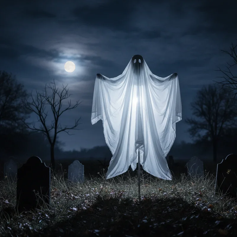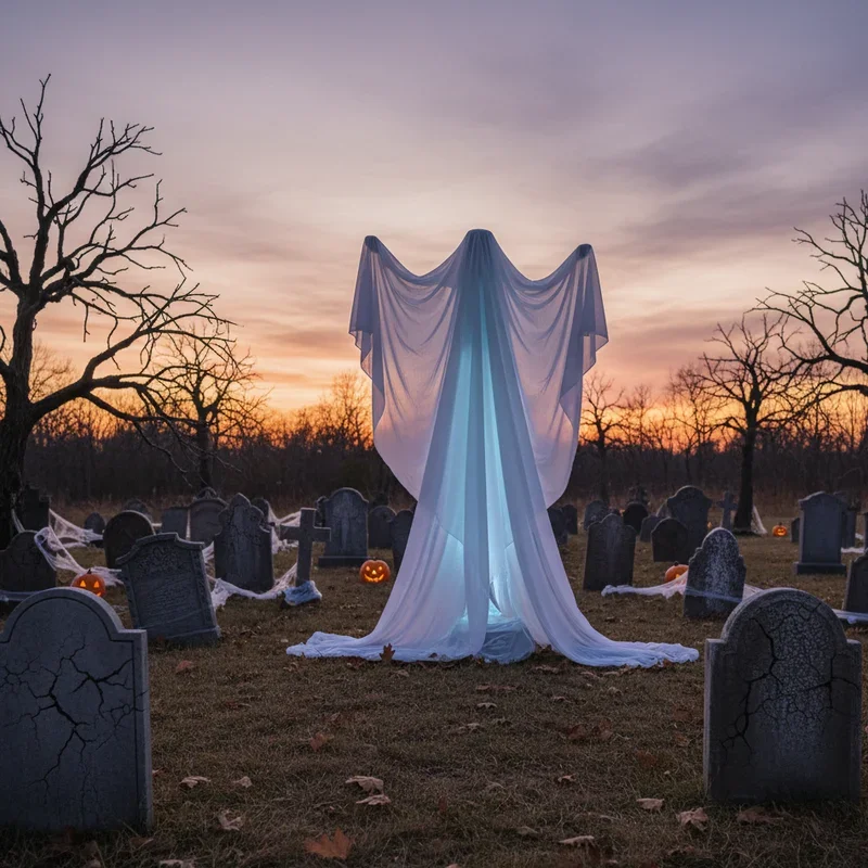 Create ethereal spirits that appear to float above graves using fishing line and lightweight materials. Hang white cloth ghosts from tree branches or tall poles, invisible at night. Use helium balloons inside fabric forms for self-floating spirits that move naturally. Install black lights to make white materials glow with supernatural luminescence. Create transparent spirits using cheesecloth or tulle for see-through effects. Position fans to create flowing, lifelike movement in fabric spirits. Include different sized spirits from child ghosts to towering spectral figures. Add subtle details like painted faces or reaching arms for personality. This otherworldly element adds vertical dimension to typically ground-level cemetery displays.