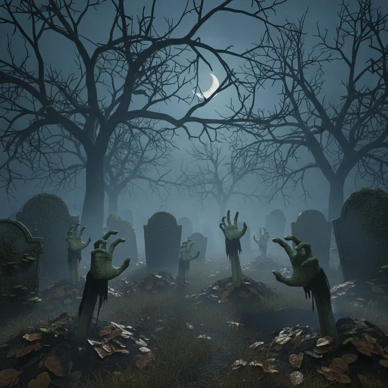 Scatter realistic zombie hands throughout your lawn as if an army of undead is clawing through the earth. Purchase or craft latex hands in various skin tones including grey, green, and rotting flesh colors. Position hands at different angles and depths, some just fingertips visible, others entire forearms exposed. Add tattered sleeve remnants or jewelry to suggest different victims' identities. Create claw marks in surrounding dirt showing struggle and determination to escape. Use stakes to secure hands that appear to grip tombstones or fence posts. Include some hands holding objects like flowers or notes for storytelling elements. Apply fake blood or mud for fresh grave authenticity. This detail-oriented approach makes visitors carefully watch their step, fearing what might grab them from below.