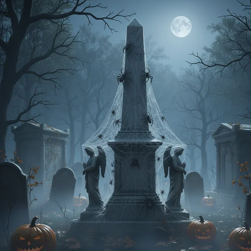 Drape elaborate spider webs across tombstones and monuments suggesting decades of undisturbed abandonment. Use stretchy cotton webbing pulled thin for realistic spider silk appearance. Spray webs with glow-in-the-dark paint for ethereal nighttime effects. Position giant spider decorations as web creators with smaller spiders throughout. Add fake flies and wrapped victims in webs for gruesome detail. Create tunnel webs visitors must duck through between graveyard sections. Attach dew drops using clear glue or glitter for morning moisture effects. Layer old and new webs suggesting continuous spider habitation over time. Include motion-activated jumping spiders for unexpected scares. This classic Halloween element adds texture and depth while creating obstacles that slow visitor movement through your cemetery.