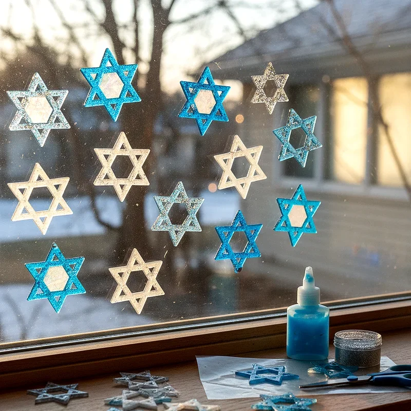 Brighten your windows with translucent Stars of David that catch winter sunlight beautifully throughout the eight nights. Using clear contact paper and tissue paper in various shades of blue, white, and silver, families can create stunning stained glass effects. Cut two triangles from cardboard as templates, then let children arrange tissue paper pieces on the sticky side of contact paper within the star shape. This activity teaches geometric concepts while celebrating Jewish symbolism in an artistic way. Add glitter between layers for extra sparkle that mimics frost on winter windows. These removable decorations won't damage glass surfaces and can be saved for future celebrations. Place them where natural light streams through to create dancing shadows that remind everyone of the miracle of light.