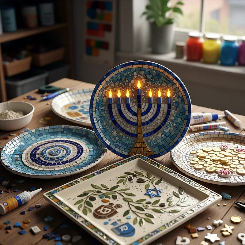 Design decorative plates using paper mosaic techniques that mimic ancient Jewish art found in historic synagogues. Start with paper plates as bases, then cut small squares from magazines, wrapping paper, or construction paper in Hanukkah colors. Arrange pieces to form Stars of David, menorahs, or abstract patterns, gluing each piece carefully to create stunning mosaic effects. This craft develops spatial reasoning and pattern recognition while producing functional art for serving Hanukkah treats. Seal finished plates with clear contact paper or laminate them to protect the design and allow gentle cleaning. Display plates on stands as seasonal artwork or use them for serving dry snacks during Hanukkah parties. Children feel proud seeing their artistic creations used during family celebrations, understanding that their contributions make holidays more special and meaningful.