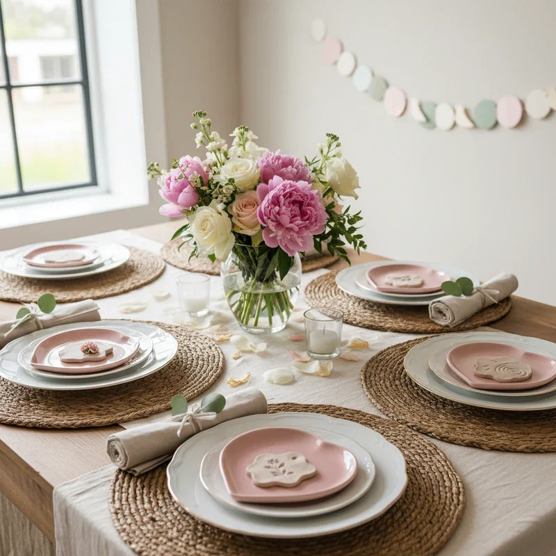 Make every seat at your Mother's Day table feel special with customized place settings. Create name cards using calligraphy or printed designs featuring each guest's name. Fold napkins into roses or fans, securing them with ribbons tied around small flower bouquets. Place a small gift or chocolate at each setting, wrapped in coordinating paper. Use charger plates in metallic tones or mom's favorite colors as foundations. Layer different textures: lace doilies under plates, silk flowers scattered on tables, or rose petals creating paths between settings. Add personal touches like childhood photos of mom with each family member at their respective seats. These details show thoughtfulness and make everyone feel included in celebrating mom. The personalized elements become keepsakes guests can take home, spreading the Mother's Day love beyond just mom.