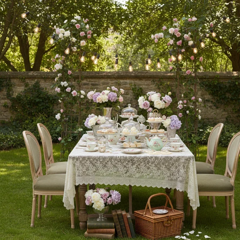 Channel old-world elegance with a vintage tea party theme that makes mom feel like royalty. Set up mismatched china teacups and saucers collected from thrift stores or borrowed from friends. Display treats on tiered serving stands adorned with doilies and fresh flowers. Hang paper parasols or vintage handkerchiefs as unique ceiling decorations. Use lace tablecloths layered over solid colors for depth and texture. Add vintage books, pearls, and antique picture frames as table decorations. String pearls or crystal garlands between serving pieces for sparkle. Play soft classical music to complete the ambiance. This theme works indoors or in gardens, creating an intimate, sophisticated atmosphere. The attention to detail makes mom feel pampered and special. Everyone naturally slows down and savors the moment in such beautiful surroundings. It's like stepping back in time to when celebrations were more deliberate and meaningful.