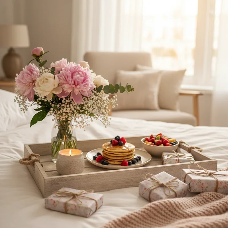 Turn ordinary breakfast delivery into an Instagram-worthy presentation that screams special occasion. Start with a beautiful tray, adding a small vase with single stem flower, perhaps a rose or tulip. Use your finest china or buy special Mother's Day themed dishes just for this moment. Fold napkins into flowers or hearts, secured with ribbon or napkin rings. Add small decorative elements like scattered flower petals or heart-shaped confetti. Include a handwritten note on beautiful stationary expressing your love. The key is layering textures and heights to create visual interest on a small surface. Consider color coordination: soft pinks and whites for elegance, or bright colors for cheerful energy. Don't forget the finishing touches like a tiny gift box with jewelry or her favorite chocolate. This thoughtful presentation makes even simple toast and coffee feel like a five-star experience.
