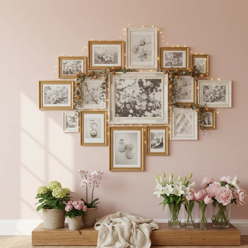 Transform a blank wall into a touching tribute showcasing mom's journey through life. Gather photos from different decades, including childhood pictures, wedding moments, and family milestones. Mix black-and-white classics with colorful recent shots for visual interest. Arrange them in heart shapes, chronological order, or creative clusters. Use matching frames for elegance or mix vintage frames for eclectic charm. Add small cards with handwritten memories or funny quotes about each photo. String lights around the display create a warm glow that highlights each precious moment. This isn't just decoration; it's a conversation starter that brings family stories to life. Watch mom's eyes well up as she discovers forgotten moments and realizes how much thought went into this display. The best part? She can keep this gallery up long after Mother's Day passes.