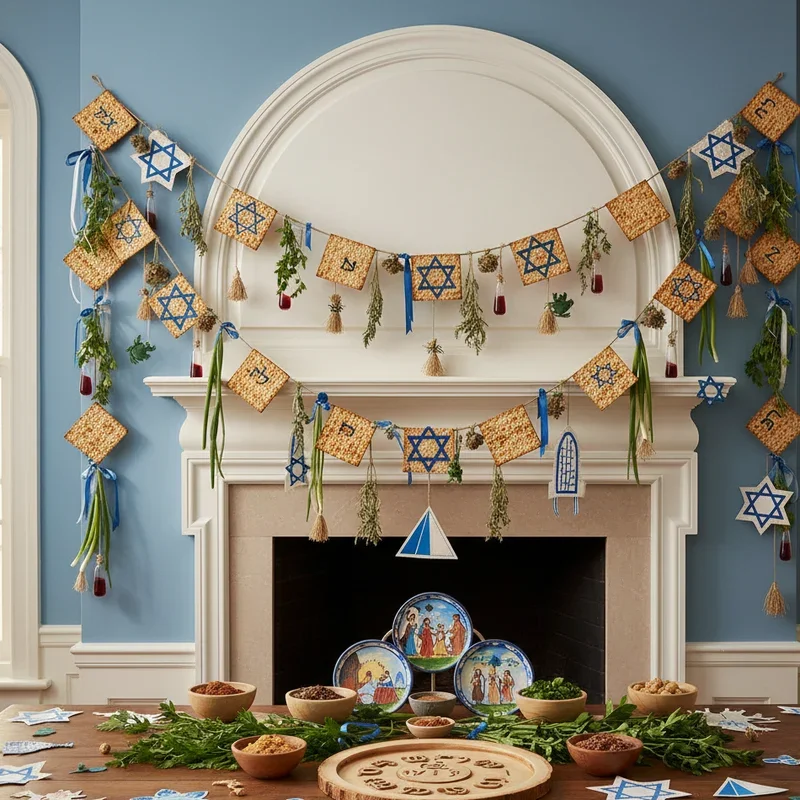 Craft festive garlands using Passover symbols that add celebration to every room while involving the whole family in preparation. Cut shapes from cardstock including Stars of David, matzah representations, wine cups, and Hebrew letters spelling "Pesach" or "Freedom." String them together with ribbon or twine in color schemes matching your overall decor. Create three-dimensional elements by layering different papers or adding glitter and metallic accents for sparkle. Hang garlands along stairways, across doorways, and around windows to spread Passover joy throughout your home. Include family photos from past Seders integrated into the garland design for personal touches. Make separate garlands for each night, adding elements daily to mark the holiday's progression. These handmade decorations become cherished keepsakes that children will remember creating, building positive associations with holiday preparations.
