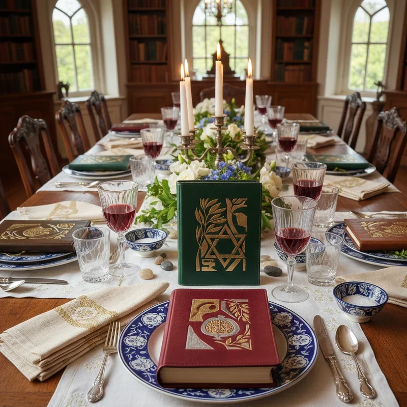 Transform standard Haggadot into cherished keepsakes with personalized covers that make each guest feel specially welcomed. Create fabric covers with guests' names embroidered or printed, using materials that complement your table's color scheme. Include the year and your family name for covers that become annual traditions, building collections over time. Children especially love having their own decorated Haggadot with spaces for drawings or notes about their Passover experience. Use clear protective sleeves over paper covers for durability while maintaining visibility of decorative elements. The personalized touches encourage active participation in readings and discussions throughout the Seder. These covers also help identify each person's Haggadah when returning from Afikomen hunts or breaks between courses.