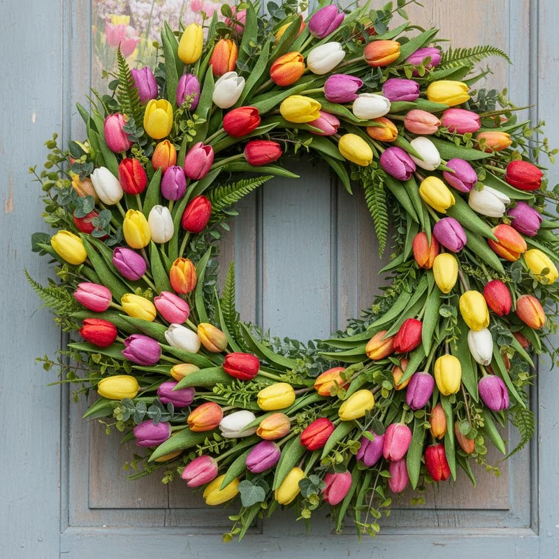 Nothing says spring quite like fresh tulips dancing in the breeze, and this classic design captures that magical garden feeling perfectly. You'll create this beauty using artificial tulips in soft pastels like pink, yellow, and white, arranged on a natural grapevine base. The secret lies in clustering the tulips at different heights to mimic how they grow naturally in gardens. Add some realistic green foliage and maybe a few small buds to create depth and movement. This wreath works wonderfully on both traditional and contemporary homes, offering that timeless appeal that never goes out of style. The best part? Unlike real tulips, this gorgeous display will last throughout the entire spring season without wilting or losing its vibrant colors.