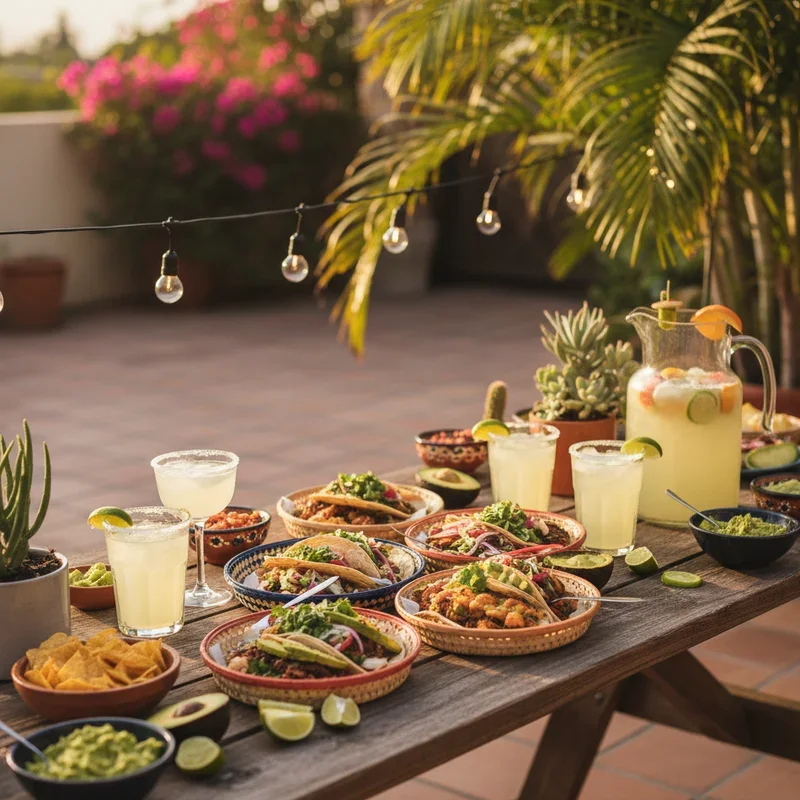 Spice up summer with a festive taco bar paired with creative margarita variations celebrating Mexican cuisine. Set up stations with various proteins, toppings, and tortilla options letting guests build custom creations. Include traditional options alongside creative fusion fillings like Korean barbecue or Nashville hot chicken. Create a margarita mixing station with different tequilas, fresh juices, and rim salts in various flavors. Decorate with papel picado, sombreros, and bright tablecloths creating authentic fiesta atmosphere. Include appetizers like guacamole, queso, and elote for complete Mexican street food experience. Play mariachi music or Latin hits keeping energy high throughout the evening. Teach basic salsa dancing or provide maracas for musical participation. This interactive format ensures everyone finds flavors they love while participating in meal creation.