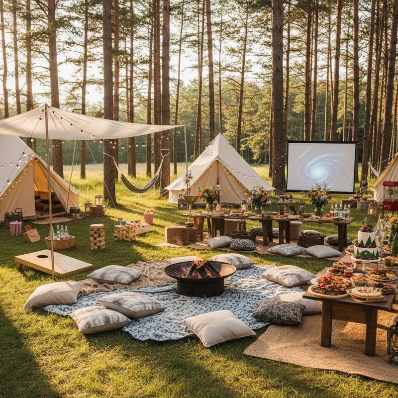 Bring camping excitement to your backyard with tents, campfires, and outdoor adventures minus the travel hassle. Set up multiple tents creating a camping village where guests can relax or nap. Include classic camping activities like ghost stories, constellation identification, and acoustic sing-alongs around fire. Serve camping foods elevated with gourmet touches like fancy s'mores or campfire paella. Organize nature scavenger hunts or flashlight tag for entertainment as darkness falls. Provide bug spray, lanterns, and camping chairs ensuring comfort throughout the night. Include morning activities like sunrise yoga or pancake breakfast cooked over the fire. This immersive experience gives camping fun without sacrificing bathroom access or safety concerns of wilderness camping.