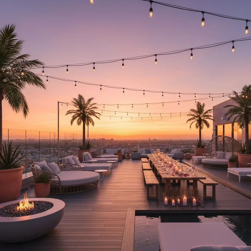 Utilize elevated spaces hosting an elegant rooftop party timed to showcase spectacular sunset views. Create comfortable seating areas with outdoor furniture, pillows, and throws for temperature changes. Install safety measures like railings or barriers ensuring guest security while maintaining views. Serve cocktails and appetizers timed with golden hour for perfect photo opportunities. Include telescopes or binoculars for stargazing after sunset extends the evening naturally. Add ambient lighting with lanterns or string lights that activate as darkness falls. Provide light wraps or blankets for cool evening breezes common at height. Create a playlist transitioning from upbeat afternoon tunes to mellow evening jazz. This sophisticated setting makes ordinary gatherings feel exclusive and memorable through elevated perspective.