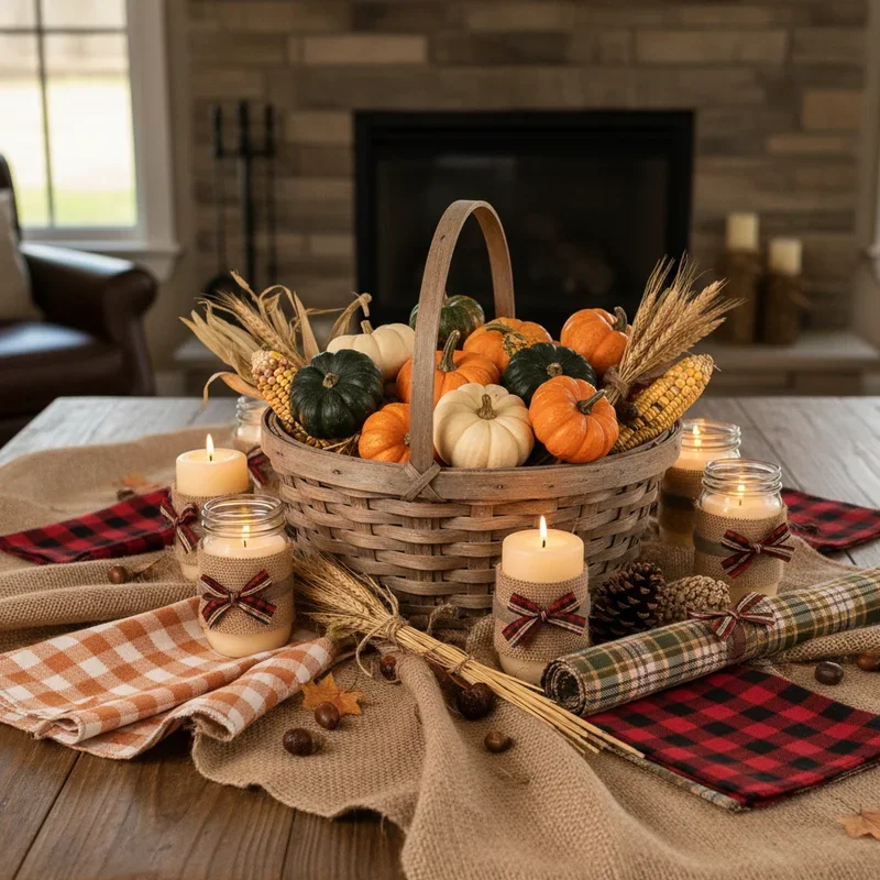 Layer your spaces with cozy textiles that instantly warm up rooms and invite guests to settle in for long conversations. Mix burlap's rustic texture with classic plaid patterns in warm autumn tones for a balanced look that's neither too casual nor overly formal. Swap summer throw pillows for plaid and burlap versions that add pattern and warmth to sofas and chairs. Drape plaid blankets over chair backs for both decoration and practical warmth as evening temperatures drop. Use burlap table runners, placemats, or chair sashes to bring texture to dining spaces without overwhelming delicate china. The combination of rough burlap and soft plaid creates tactile interest that makes spaces feel layered and intentional. These textiles work year-round in fall and winter decorating, making them smart investments.