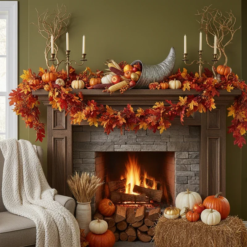 Transform your fireplace into the room's focal point with carefully curated mantel decorations that draw eyes and create cozy ambiance. Layer different heights using candlesticks, small pumpkins, and framed autumn prints for dimensional interest that photographs beautifully. Drape a leaf garland along the mantel's edge, allowing it to puddle slightly at corners for organic flow. Include mirror or metallic elements to reflect firelight and candles, multiplying the warm glow throughout the room. Balance symmetrical anchor pieces with asymmetrical groupings for sophisticated look that feels intentional yet effortless. Add personal touches like family photos in autumn-toned frames or children's handprint turkey art for meaningful decoration. The mantel becomes a storytelling space that evolves throughout the season while maintaining cohesive style.