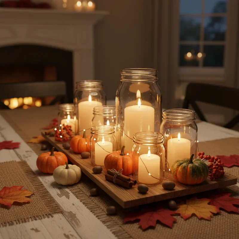 7. Candlelit Mason Jar Displays